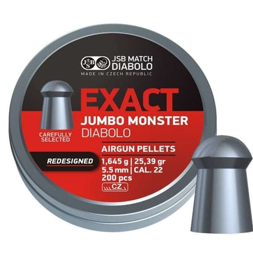 JSB DIABOLO JUMBO EXACT REDESIGN MONSTER .22, 200 PER TIN, 25.39 GRAIN (No Returns)